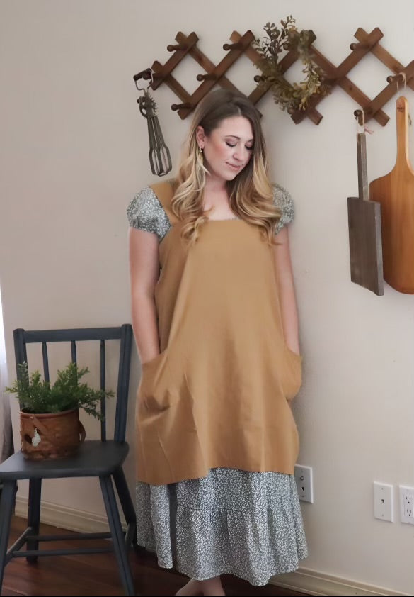 Our Homesteader Apron feels like a nod to early American kitchens. Simple, sturdy, and made with purpose. With generous pockets for filling with eggs, garden bounties, and more, this pinafore style apron is ready for bread rising by the hearth, soil-dusted harvests from the garden, and long afternoons spent tending to your home. It's a piece that works as hard as you do while carrying the charm of days gone by.